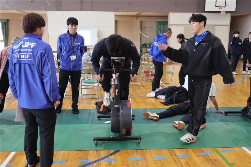 また、講話だけでなく負荷の高いトレーニング用のエアロバイク「ワットバイク」を体験させていただき、改めてプロ選手のすごさを実感しました。